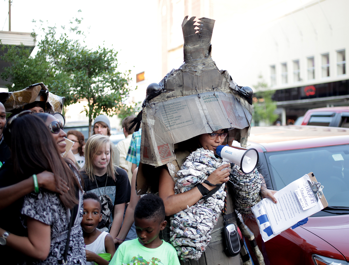 Feast of Flowers was a year long residency with the city of Hammond, LA in the form of a series of community collaborations and workshops, culminating in a series of installations and performances throughout the town. Events were often concurrent and/or in conjunction with City of Hammond Downtown Development District organized city-wide event-nights, including First-Friday Art Walks, Hot August Night, Starry November Night, and P3+ Excursion Weekend, a part of P3, New Orleans, LA’s 3rd edition of the American Biennial.